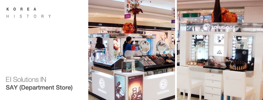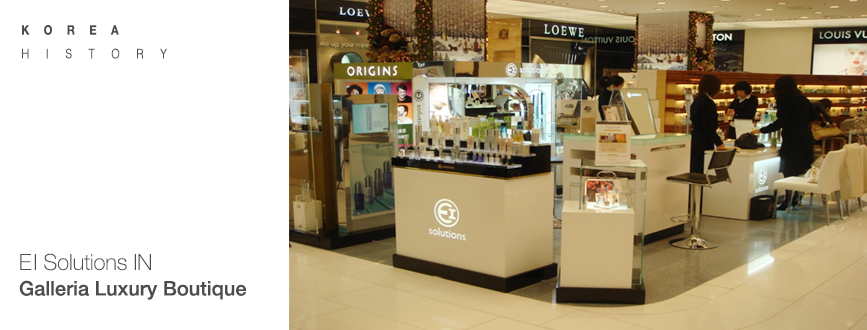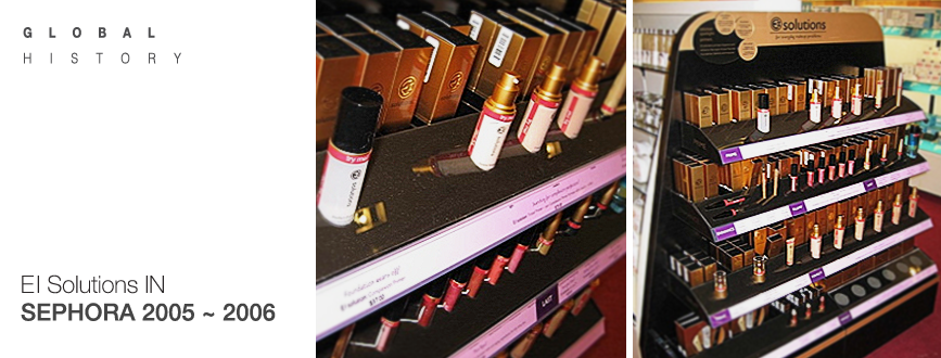By reflecting changing needs of consumers, it evolved into the current EI Solutions by adding revolutionary skin treatment products into makeup items. After that, EI Solutions was sold in luxury department stores such as Sephora and Dilard’s in the US, and is an internationally recognized brand that competes shoulder to shoulder against other prominent brands in the world. Furthermore, it was introduced on TV in the US, in the famous beauty magazines and catalogs all over the world.